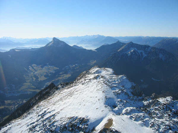 Arrivé au sommet, la vue est magnifique et les thermiques remontent face est. Je décolle à 11h30 et me bagarre pour repasser au dessus du sommet en profitant des colonnes thermiques sur l’arête Sud. Puis un ascenseur me hisse sans problème 200m au-dessus du sommet. Vue sur toute la Chartreuse, le Couvent au pied du sommet, le Mont-Blanc… Ballade le long de l’arête puis posé au col après une heure de vol