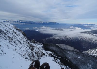 Voilà, je suis monté en raquette jusqu’à 2440m, le point le plus haut de la crête de Brouffier, auquel s’arrêtent en général les skieurs. A la montée, un peu de vent de N laminaire au dessus de 2200m le long de la crête, qui devient moins fort et moins stable en s’approchant du point le plus haut.