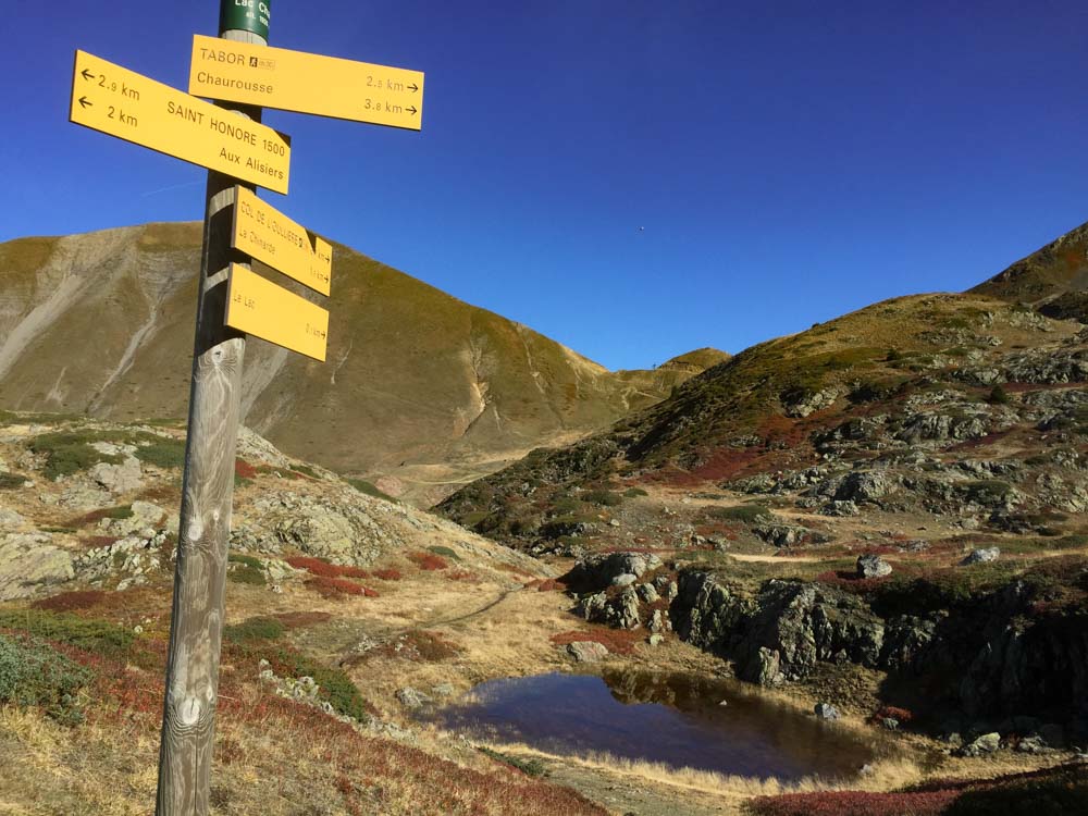 Tout est bien balisé (jaune) et indiqué, il suffit de monter dans un premier temps jusqu’au Lac Charlet (1920 m), puis, après un détour au Lac, on continue dans la direction du Tabor.