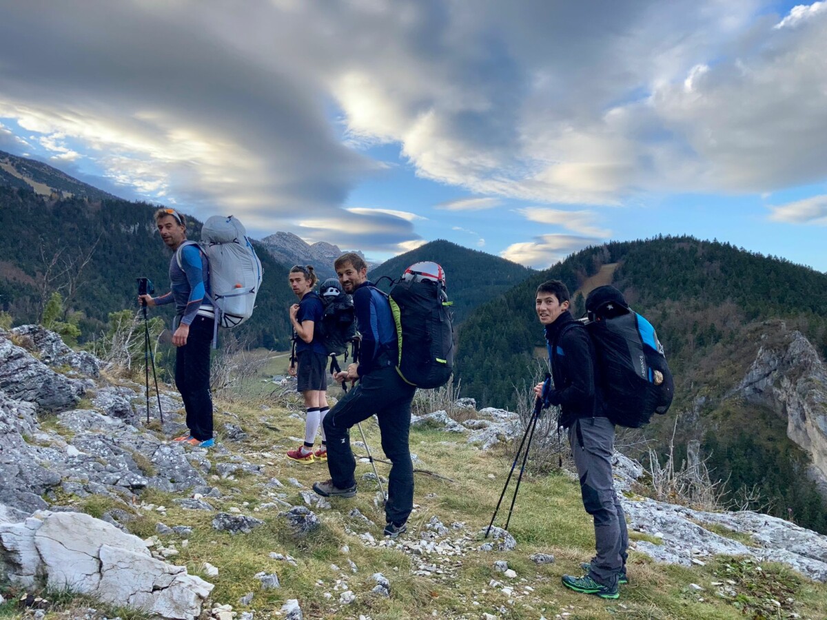 A 8h20, nous partons à pied de Lans pour rejoindre le sommet du Moucherotte en passant par un raccourci un peu plus technique et raide que le chemin classique, mais plus rapide (il est fort ce guide !).