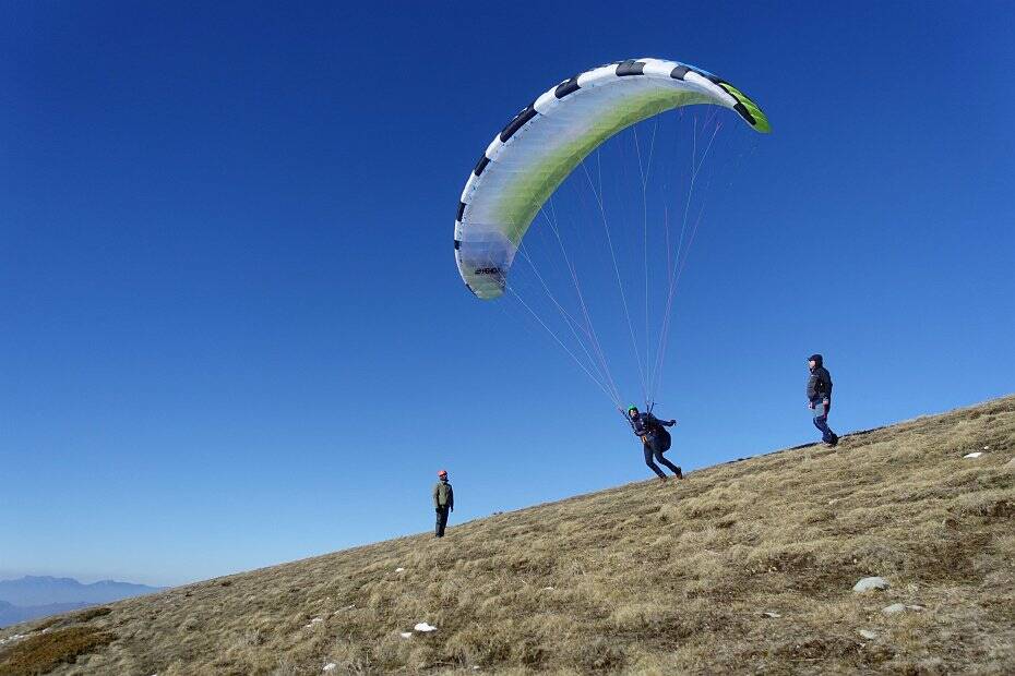 Ludo se dévoue pour ouvrir, mais il bataille bien en face des rafales qui se succèdent. Il finit par décoller et restera 45 minutes en l’air avant d’aller se réfugier au Café des Arts à Mens. Parce que les autres aventuriers, soudain pris de compassion pour Maxime qui a oublié son parapente à la maison, décident de redescendre à pieds avec lui. (en fait ce n’est pas seulement de la compassion, il y a aussi ces foutues rafales et des accalmies qui sont de plus en plus brèves). La descente sera longue et un peu glissante, mais on revient entiers !
