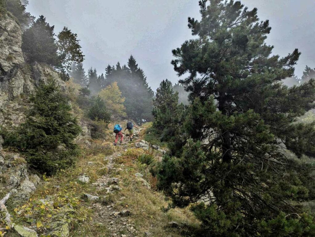 (Sobre et pudique) Le prévisions sont bonnes : ensoleillé avec faible flux du nord. Mais comme c’est bâché au départ du sentier, on se presse lentement (sous les sarcasmes d’un autochtone qui nous conseille de passer plutôt par Saint-Honoré). Le tamagochi et quelques cairns nous amènent au Col de la Chinarde par un sentier parfois un peu raide. À partir de là on est au soleil ; on en oublie de s’extasier au passage sur les marbres verts de la Chinarde et les oreilles du loup et on fonce tête baissée au Col de l’Ollière.