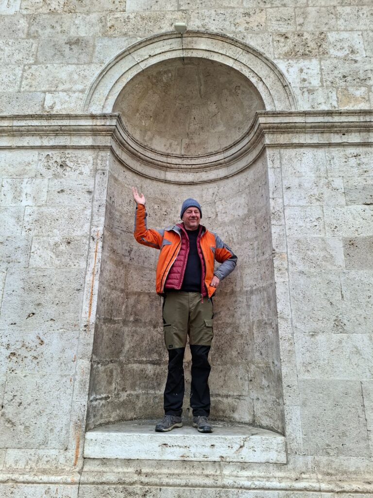 Anecdote: Quelques km avant d’y arriver, on passe un carrefour avec deux panneaux: Rome à droite à ~120km; Rome à gauche à ~125km. Ça confirmait bien le vieil adage que tous les chemins y mènent. Dommage qu’on n’ait pas pensé à le photographier en passant!