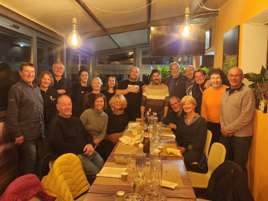 Cette fois, nous sommes 14 participants. Et, une fois n’est pas coutume (C’est peut-être même une première dans l’histoire du club?), il y a parité parfaite hommes-femmes, avec 6 couples, plus un homme et une femme venus (et repartis) en célibataire: