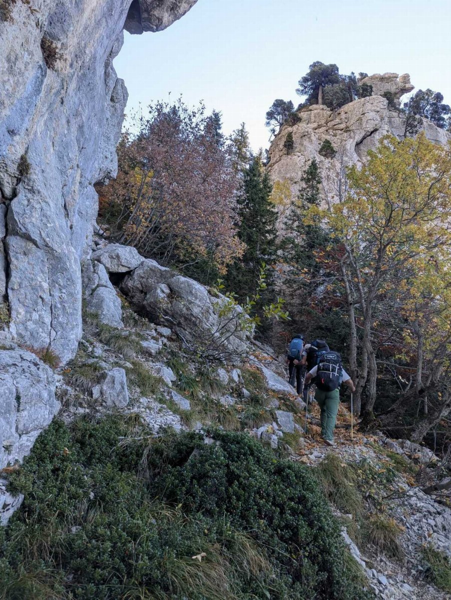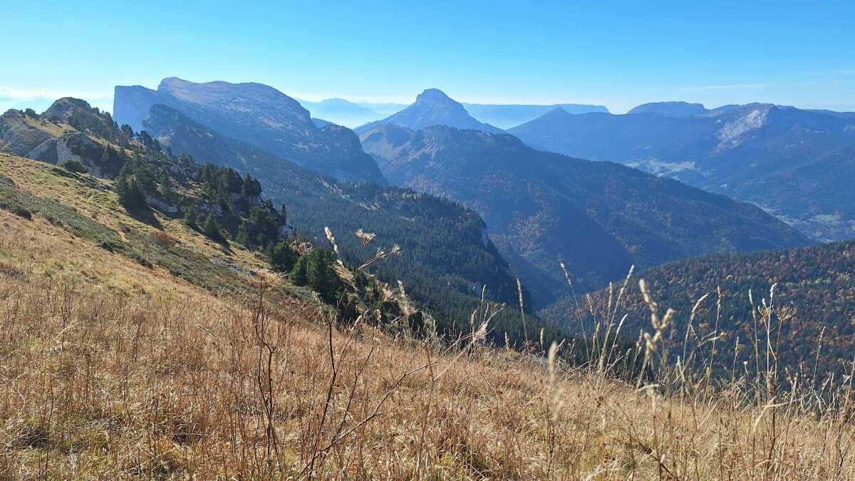 La montée est très efficace (raide), mais agréable : d’abord en forêt, puis on en sort en passant dans une sorte de couloir dans la falaise. Une fois sur la crête, la vue est superbe, et en la remontant, on croise deux chamois.
