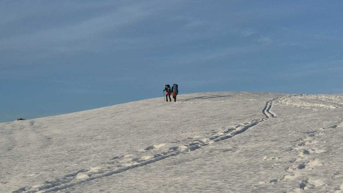 Donc on commence à grimper la piste vers 14h30. On marche de suite dans la neige même si quelques passages sont dégagés en partie basse.