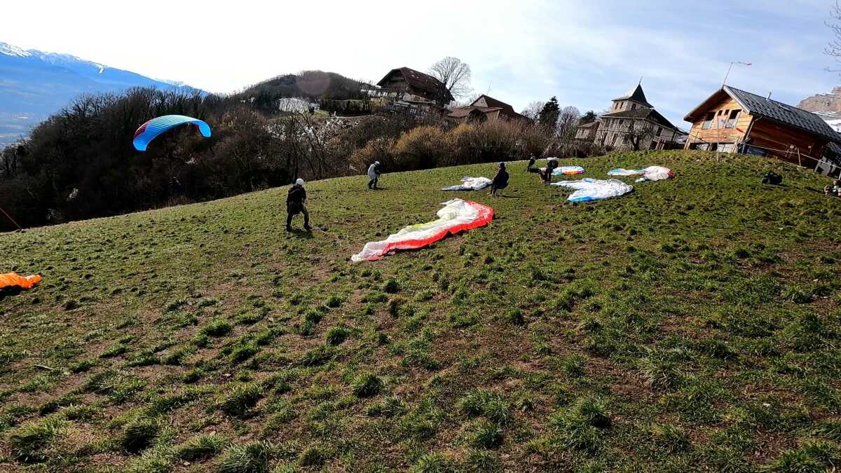 Posés à Lumbin en évitant les flaques après 25 à 45 min de vol suivant les pilotes ! On recroise Ludo qui a bien réussi son 2ème vol.