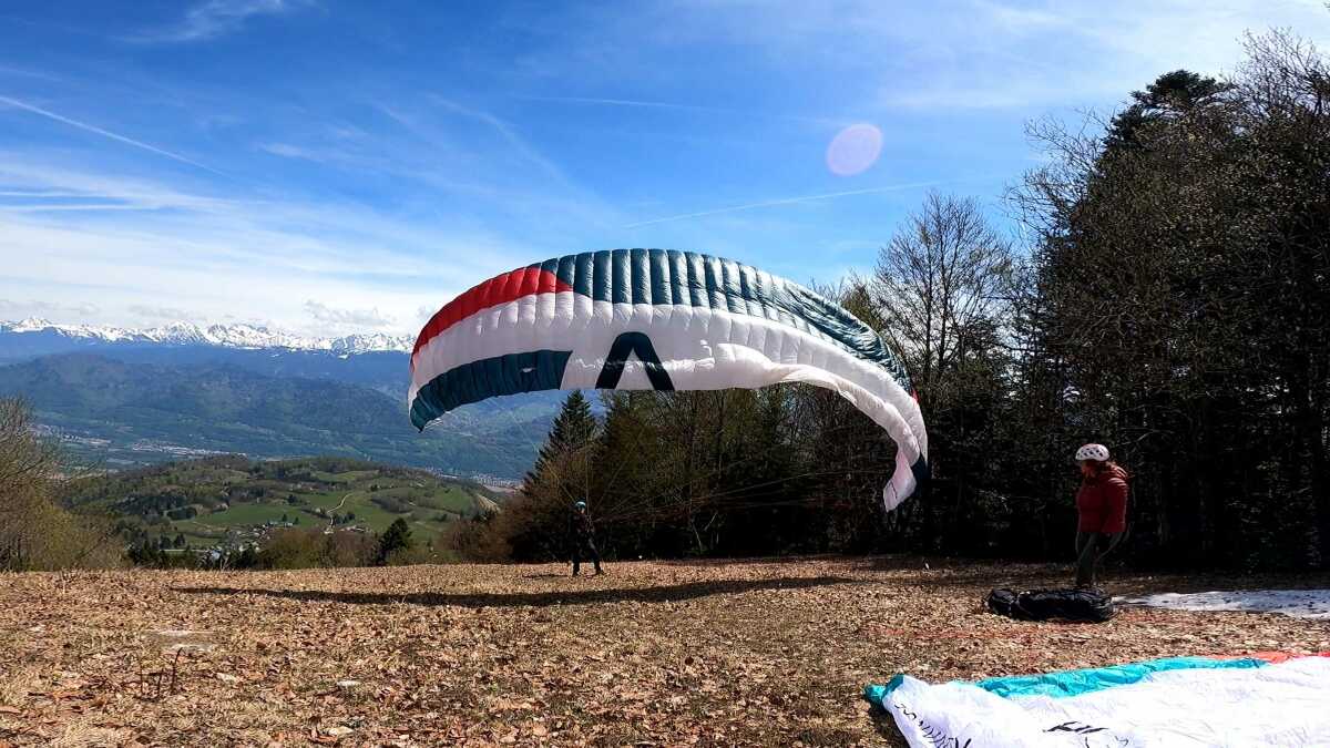 Finalement l’apport de sucre rapide fait son effet et je termine rapidement la montée. La brise est dans le bon sens et nous décollerons facilement. Valérie ne veut pas trainer et se dirige en vallée.