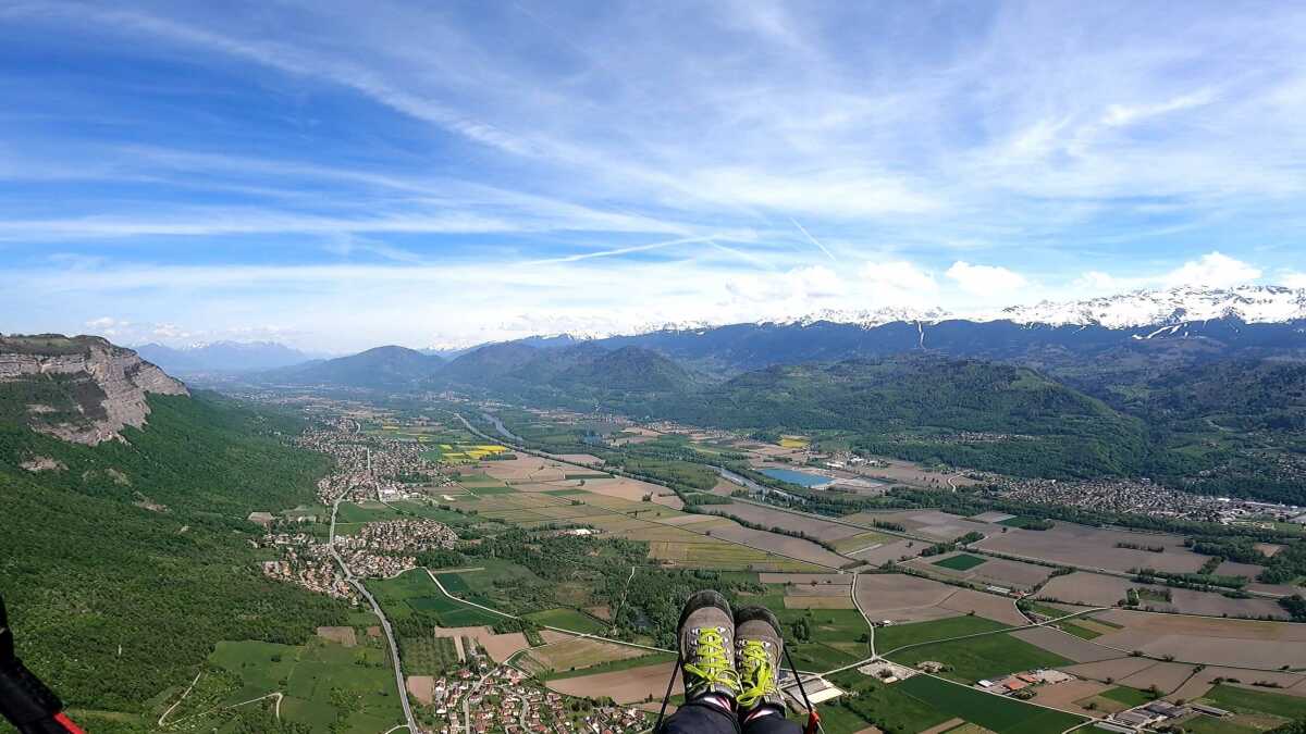Alex et moi profitons des thermiques. Je fait un tour à St Pancrasse, fait un bon plafond au-dessus de chez Alexia et Medhi, mais vu l’heure je m’oblige à retourner en vallée pour poser et être à l’heure à mon RDV. Alex continue de voler encore 40 minutes et posera lui aussi à Lumbin.